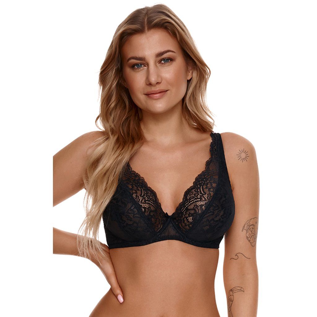 Smyslná, jemná podprsenka s kosticemi. Určeno pro ženy se středním a velkým poprsím. Měkké košíčky se svislým střihem z krajky vyztužené šifonem. Konstrukce této podprsenky zajišťuje plné pohodlí při nošení a ideální podporu poprsí. Ozdobná mašle mezi šálky. Nastavitelné popruhy, neodnímatelné. Zapínání na háčky a očka na zadní straně.K tomuto setu doporučujeme pletené a krajkové šortky.Složení: 85 % polyamid, 15 % elastan.Doplňkové parametry