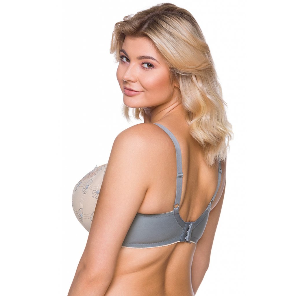 Podprsenka Lupoline 2255:- mirně vyztužené košíčky- košíčky vyrobené z pěny a plenu s květinovým vzorem- zadní část podprsenky z mikrovlákna v šedém provedení- nastavitelná a neodepínatelná ramínka- šířka a typ zapínání zavísí na velikosti podprsenkySložení: 70 % polyamid, 20 % elastan, 10 % bavlnaDoplňkové parametry