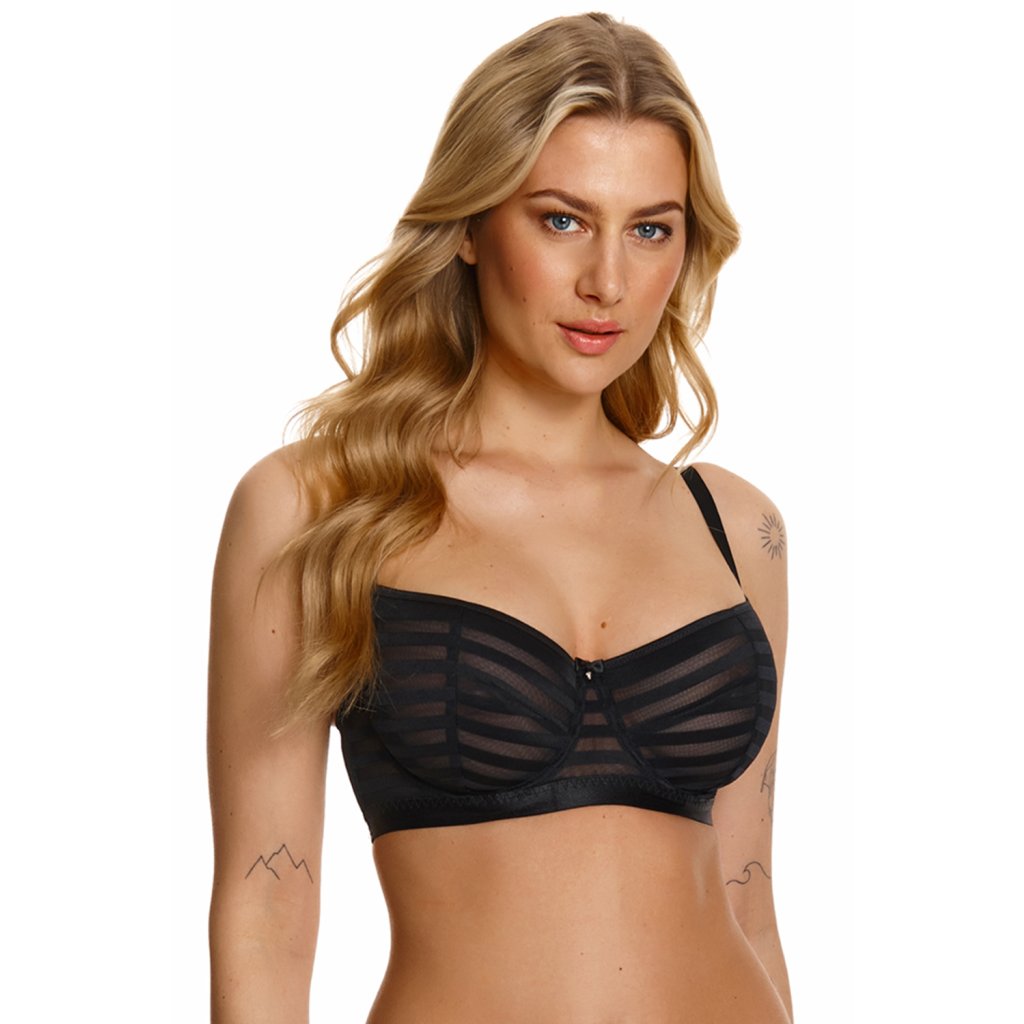 Stylová podprsenka v černé barvě.- měkké košíčky s kosticemi