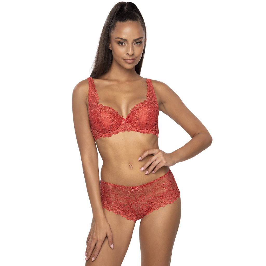 Dámská vyztužená podprsenka.- košíčky a můstek z krásné krajky s květinovým vzorem- saténová mašle mezi košíčky- nastavitelné popruhy, neodnímatelné- prodloužená, krajková ramínka- dráty podporují a tvarují prsa- zadní strana z jemné síťoviny - barvy: bílá, černá- svislé boční velrybí kosti - barvy: bílá, černá, červená- krajková záda - barvy: béžová, světle šedá, terakotová, růžová, červená, broskvová, topaz, krémová, khaki- bez boční velrybí kosti - barvy: béžová, světle šedá, terakotová, růžová, broskvová, topaz, krémová, khakiK soupravě doporučujeme kalhotky nebo šortky Carmela.Barva: bílá, černá, červená:Složení: 66 % polyamid, 18 % bavlna, 10 % polyuretan, 6 % elastan.Barva: béžová, světle šedá, terakotová, růžová, broskvová, khaki:Složení: 44 % polyamid, 17 % bavlna, 17 % polyester, 17 % polyuretan, 5 % elastan.Barva topaz, krémová:Složení: 44 % polyamid, 18 % polyester, 16 % bavlna, 16 % polyuretan, 6 % elastan.Doplňkové parametry