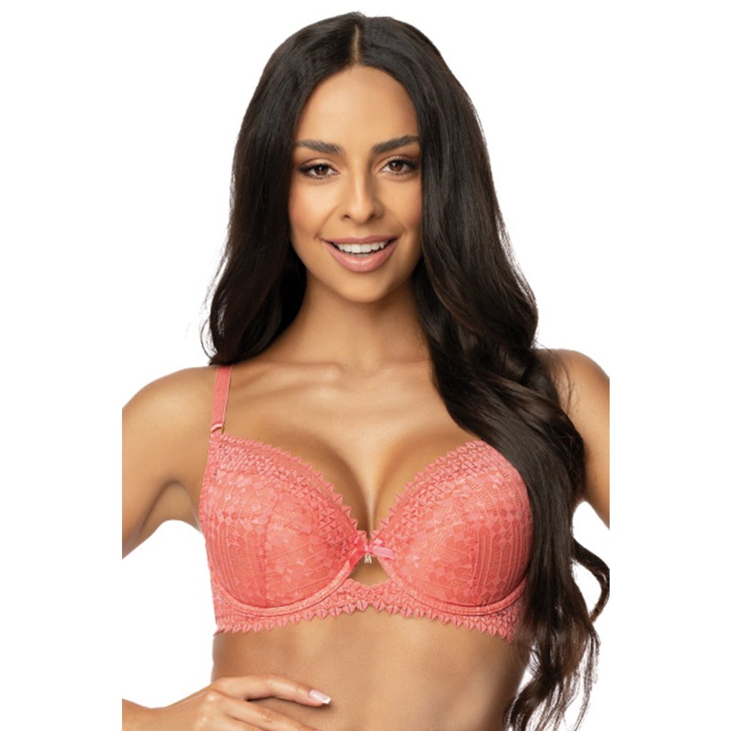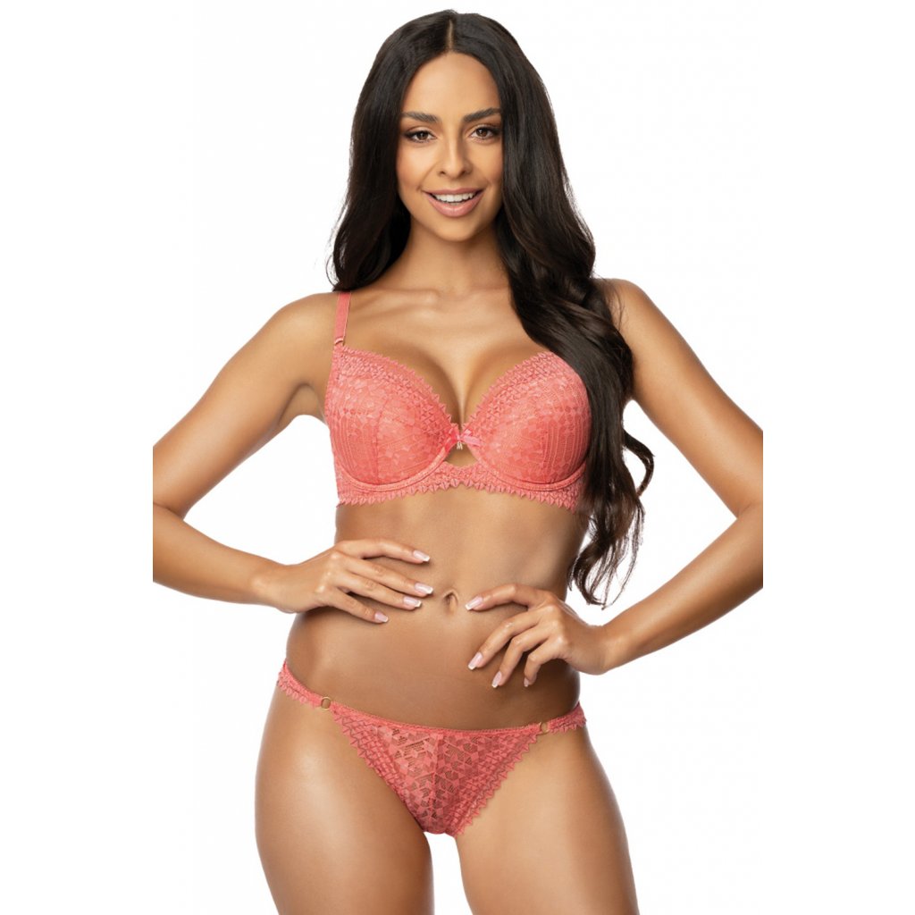 Podprsenka push-up:- košíčky z efektní krajky v korálové barvě