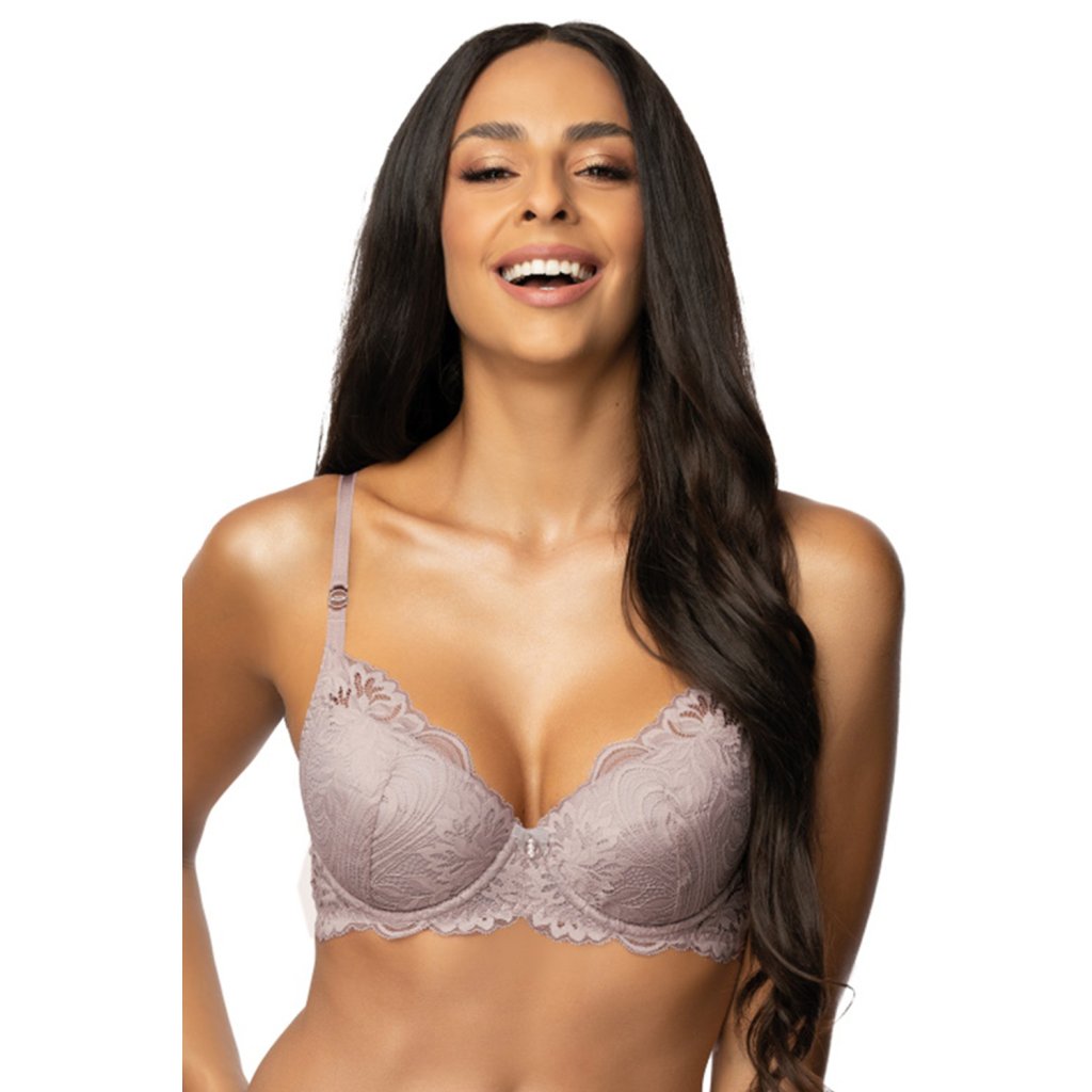 Dámská push-up podprsenka. - vyrobeno z krásné krajky - vyjímatelné zvětšovací vložky - vnitřní strana košíčky je podšitá bavlnou - mašlička s lesklým zdobením mezi košíčky - krajkové boky - žádné boční švy - jemně prodloužená ramínka - neodnímatelné, nastavitelné ramínka  - Zapínání na háčky vzadu - dvouřadý hák s třístupňovým nastavením -  Složení: 28% polyamid, 27% bavlna, 21% polyester, 21% polyuretan, 3% elastan.