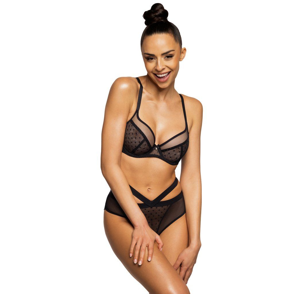 Podprsenka značky Mat. Model 3714/2 Dotssy. Má kostice, které prsa vhodně tvarují. Svislé kostice zasazené po stranách. Výrobek má nastavitelné ramínka bez možnosti odepnutí. Kovové háčky na ramínkách . Podprsenka se zapínáním na háčky a oči. Upevňovací bod: vzadu. Dvě řady svislých háčků. Tři stupně horizontálních háčků.Výrobek je vyroben z 97 % polyamidu a 3 % elastanu. Výrobek pro ženy.