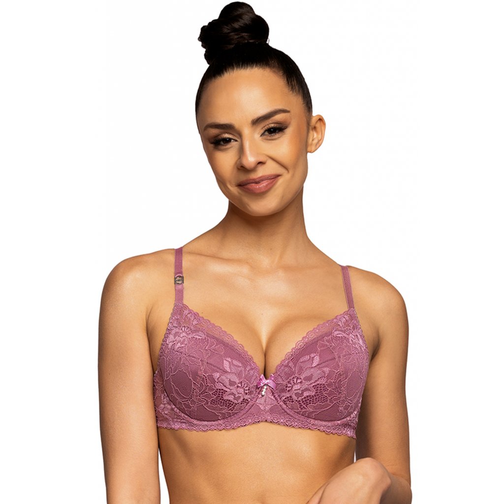 Elegantní push-up podprsenka v růžové barvě.- je celý z krajky s květinovým motivem