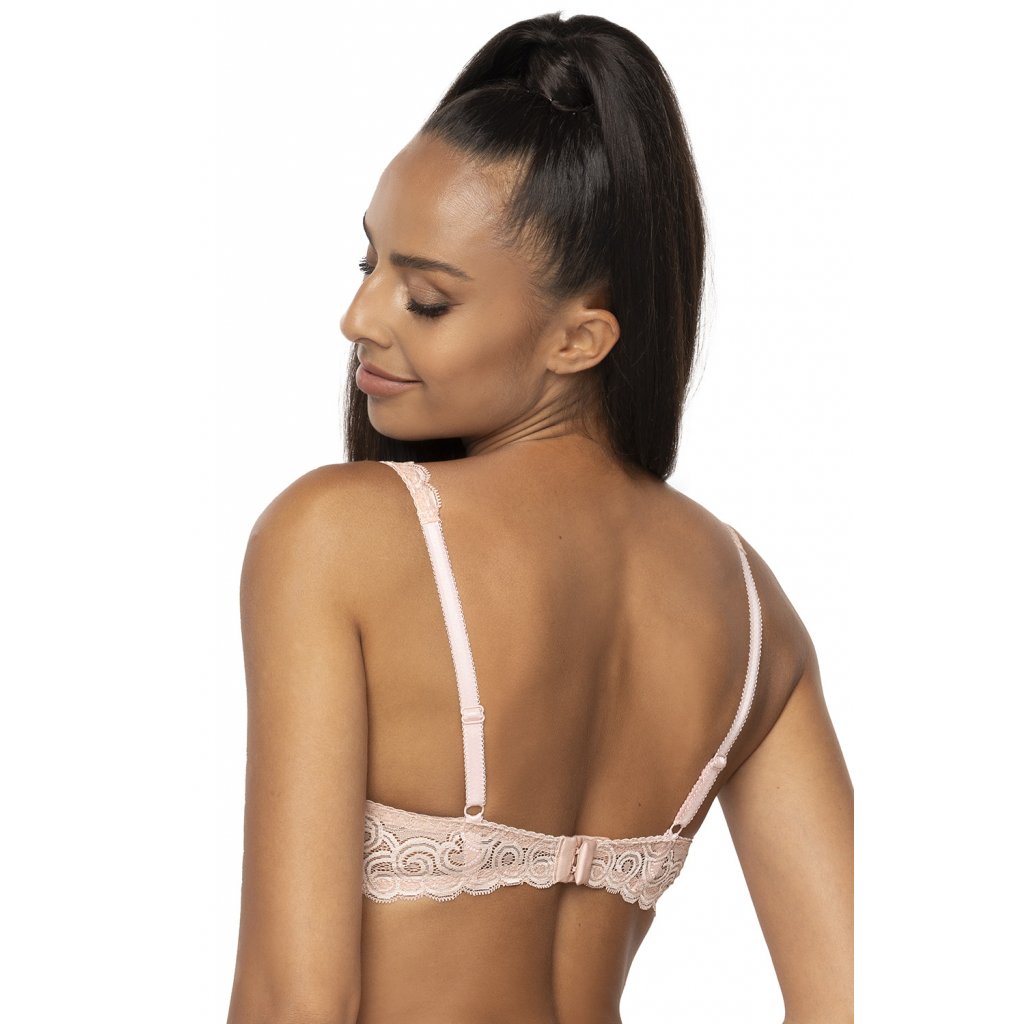 Dámská vycpaná podprsenka. - košíčky a můstek jsou vyrobeny z krásné krajky - saténová mašlička s přívěskem mezi košíčky - nastavitelná, neodepínatelná ramínka - prodloužená, krajková ramínka - drátky podporují a tvarují prsa - krajková záda - žádné boční kostice K doplnění kompletu doporučujeme Nataliiny kalhotky. Složení: 38% polyamid, 17% bavlna, 17% polyester, 17% polyuretan, 11% elastan.