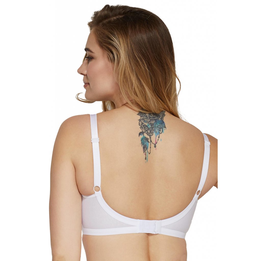 Podprsenka se vzadu zapíná na háčky s třístupňovou regulací, která poskytuje dodatečný komfort individuálního nastavení.