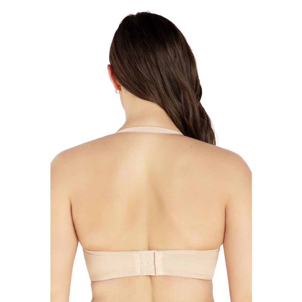 Nastavitelná, odnímatelná ramínka. Pět možností křížení ramínek. Zadní část je vyrobena z pružného úpletu. Zapínání na háčky vzadu. Tato podprsenka poskytuje vynikající oporu poprsí.