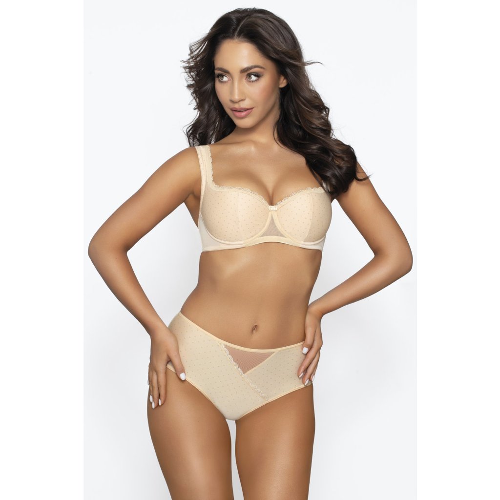 Sexy a elegantní push-up podprsenka, která dokonale zvýrazní poprsí, dodá mu plný a lákavý tvar. Vyrobeno z jemného materiálu zdobeného jemnými, lesklými tečkami, které mu dodávají jedinečné kouzlo. Hladké boky a krajka na košíčkách a ramínkách zdůrazňují ženský styl a dodávají celku mimořádně šik. Design podprsenky poskytuje dokonalou podporu a zaručuje pohodlí a jistotu po celý den.Složení: bavlna 5%, elastan 17%, polyamid 78%