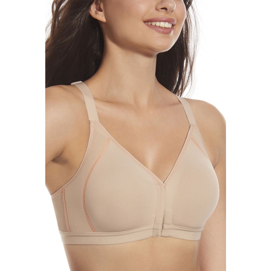 Selene Nora je sportovní podprsenka navržená pro pohodlí a snadné nošení. Přední zapínání na háčky umožňuje rychlé a snadné přizpůsobení, ideální pro trénink i každodenní nošení. Měkká konstrukce bez kostic poskytuje přirozenou oporu, zatímco pružná a hladká tkanina pohodlně splývá. Košíčky mají plnější linii, která stabilizuje poprsí bez zbytečných švů nebo ozdob. Nastavitelná ramínka s kovovými regulátory usnadňují přesné přizpůsobení. Stabilizační pás pod prsy pomáhá udržet podprsenku na místě během pohybu. Hladké povrchy podporují diskrétní nošení pod oblečením a minimalizují riziko podráždění. Je to praktická volba pro lehké aktivity, chůzi, jógu nebo domácí cvičení, ale také pro pohodlné každodenní nošení.Přední zapínání na háčky pro snadné oblékání a svlékání.