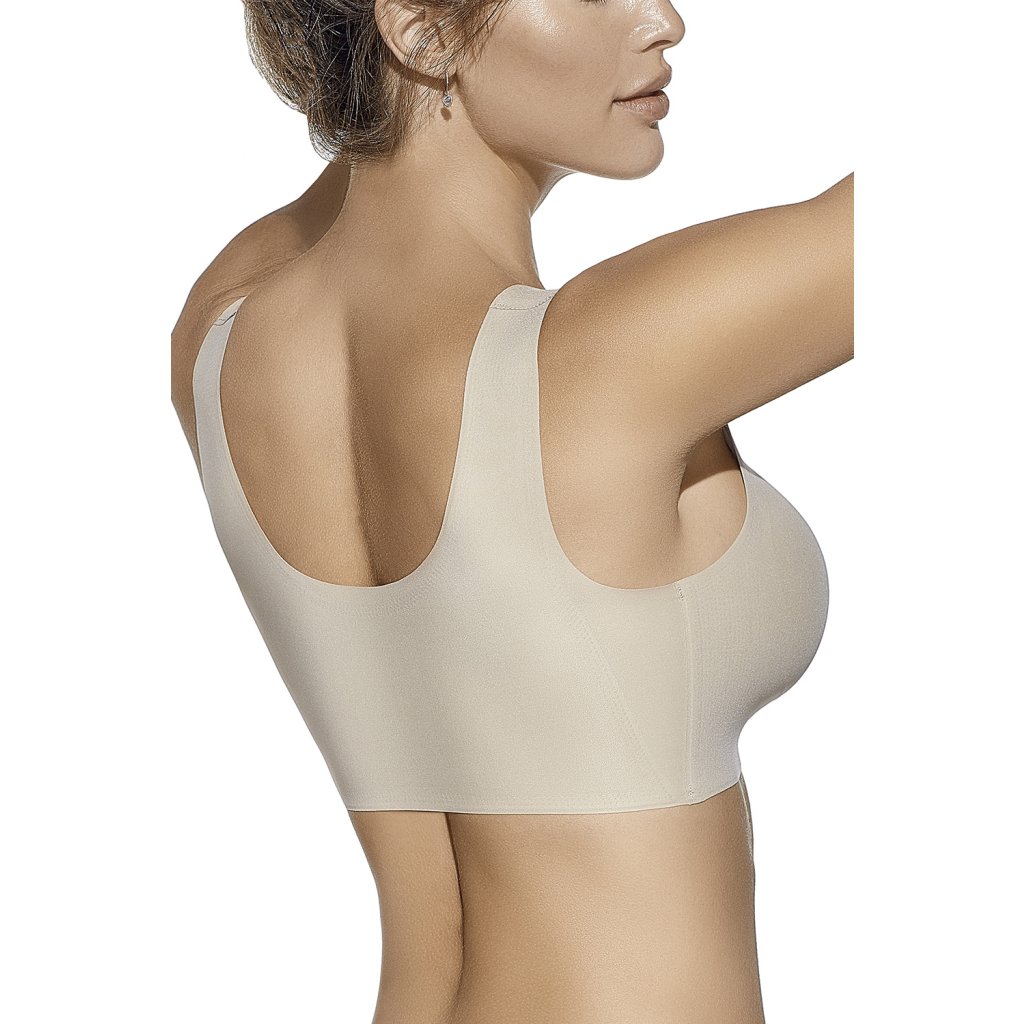 Selene Olivia je bezešvá podprsenka, která se jemně přizpůsobí vaší postavě a poskytuje hladký pocit pod oblečením. Pružná tkanina se přizpůsobí vašemu tělu a poskytuje pohodlný pocit po celý den. Košíčky mají kapsy na vycpávky, což vám umožní přizpůsobit úroveň podpory vašim potřebám. Široká, neodnímatelná ramínka nejsou nastavitelná a pohodlně rozkládají váhu. Široký, stabilní pás pod prsy poskytuje lehkou oporu a pohodlí. Zadní strana je hladká a nezapínatelná, což zajišťuje pohodlné nošení a žádné skřípnutí. Hladký povrch usnadňuje nošení pod přiléhavým oblečením. Tento model je ideální pro každodenní nošení, doma nebo jako pohodlný top pod svetry a košile. Měkká tkanina zvyšuje pohodlí. Je to praktická volba pro ty, kteří si cení minimalismu a pohodlí bez kompromisů.Bezešvá, měkká braletka pro každodenní nošení