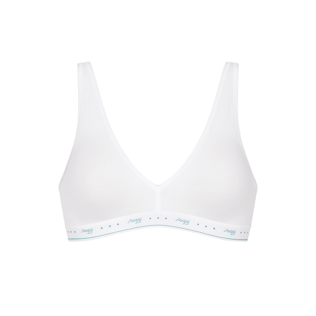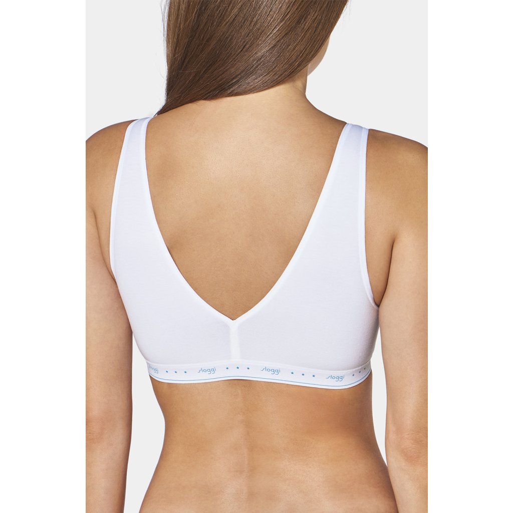 Klasický bralette top. měkké košíčky Výstřih do V široká ramínka nenastavitelné, neodnímatelné popruhy široká guma v pase s logem Sloggi vysoce kvalitní, měkká bavlna Složení: 79% bavlna, 21% elastan.