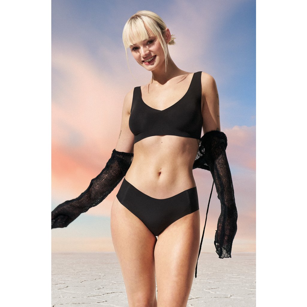 Bezešvá podprsenka -Výstřih ve tvaru V - měkké košíčky -vyjímatelné vložky - široká ramínka –neodepínatelná, nenastavitelná - střední úroveň výdrže - jemný, prodyšný recyklovaný polyamid s certifikátem GRS - měkký povrch zajišťující měkkost na dotek - dvojitá vrstva látky - model bez kostic, zcela neviditelný pod oblečením díky inovativní technologii lepení - Technologie Activated Silk™ odvádí vlhkost a zajišťuje pohodlí a sucho - malý potisk sloggi na boku Složení: 76% polyamid, 24% elastan.