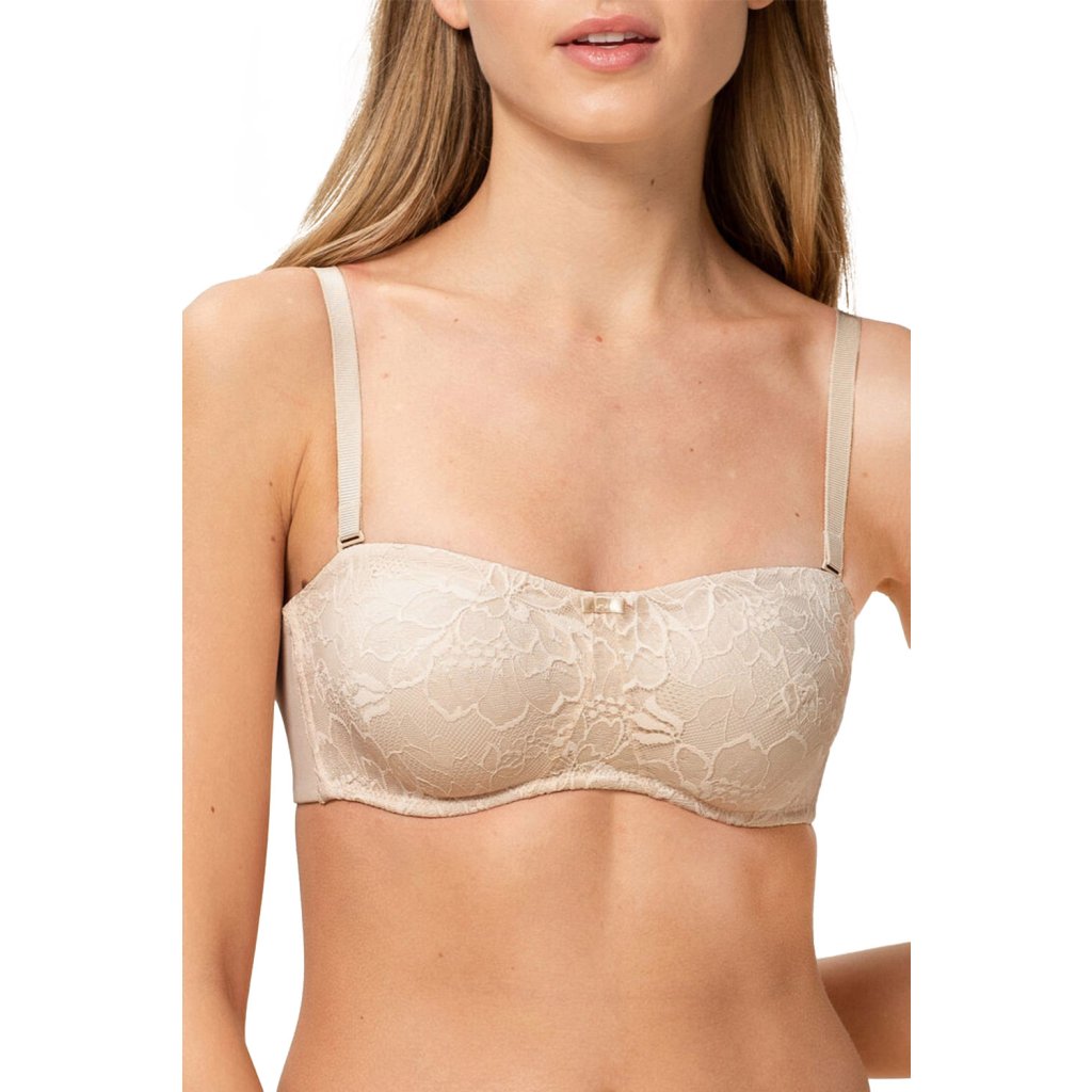 Tato nevyztužená podprsenka bez ramínek s kosticemi je nejaktuálnější novinkou řady Amourette Charm od Triumph. Tato podprsenka je díky své neviditelné krajce, pocitu lehkosti a maximální podpoře bez ramínek naprosto dokonalá. 3D pružné kostice nabízejí maximální podporu košíčků do velikosti G bez omezení pohodlí. Nevyztužená podprsenka bez ramínek s kosticemi z nádherné hladké krajky zajišťuje neviditelnost pod oblečením Zdobené tvarované hladké košíčky 3D pružné kostice a boční výztuhy zaručují pohodlnou podporu i u větších velikostí košíčků Inovativní gumička s tekutým silikonem a zkřížená konstrukce výztuh K dostání s košíčky do velikosti G Saténová mašlička vpředu mezi košíčky Nastavitelná 3D variabilní a odnímatelná ramínka Zapínání na háčky a očka se třemi polohami nastavení šířkyMateriál 70% Polyamid , 30% Elastan