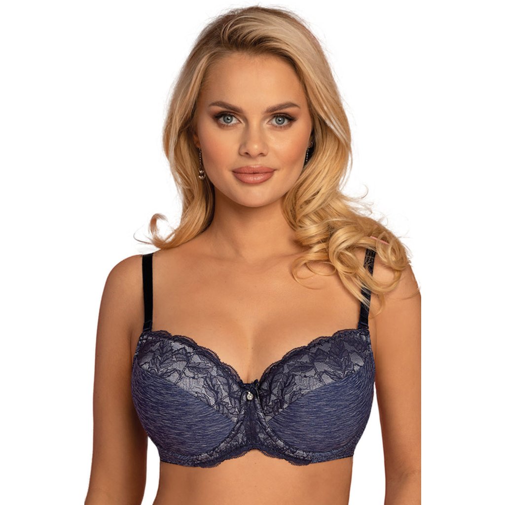 Dámská vyztužená podprsenka v tmavě modré barvě.- horní část košíčku a střed z krajky