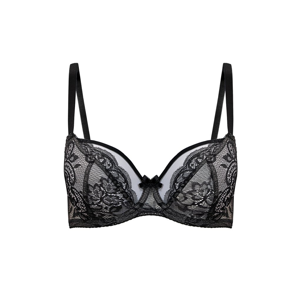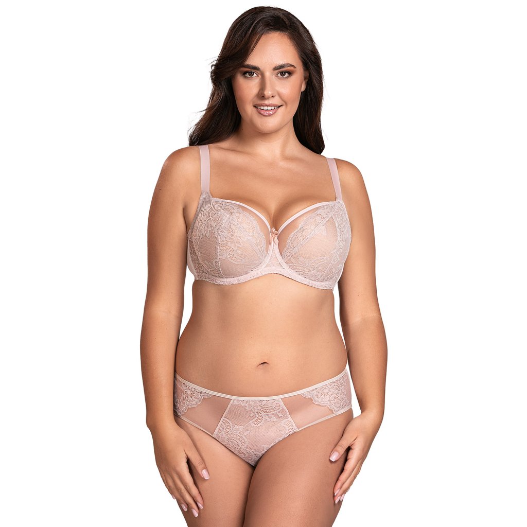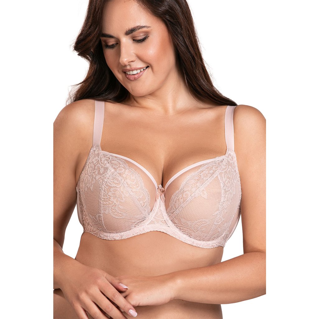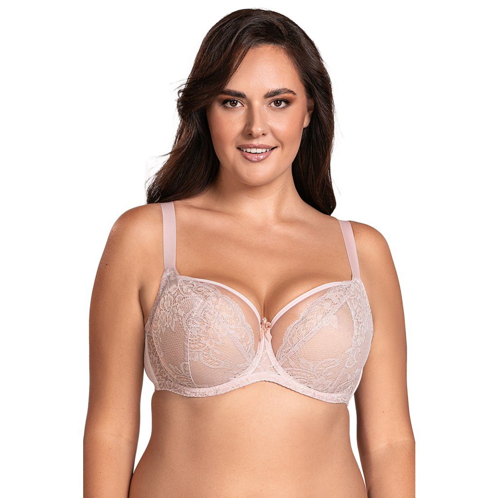 Jemná a mimořádně ženská měkká podprsenka.- horní část košíčků zakončená síťovinou a lemováním