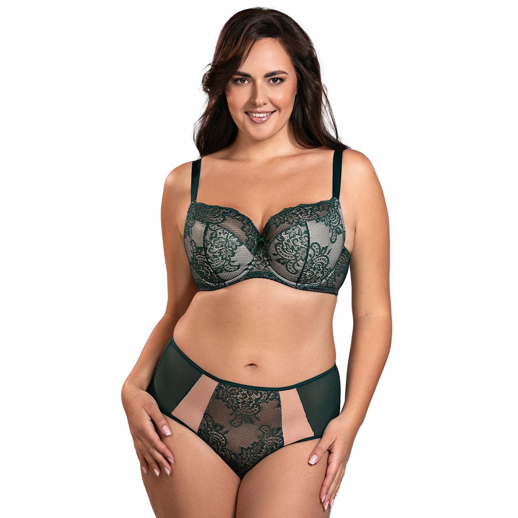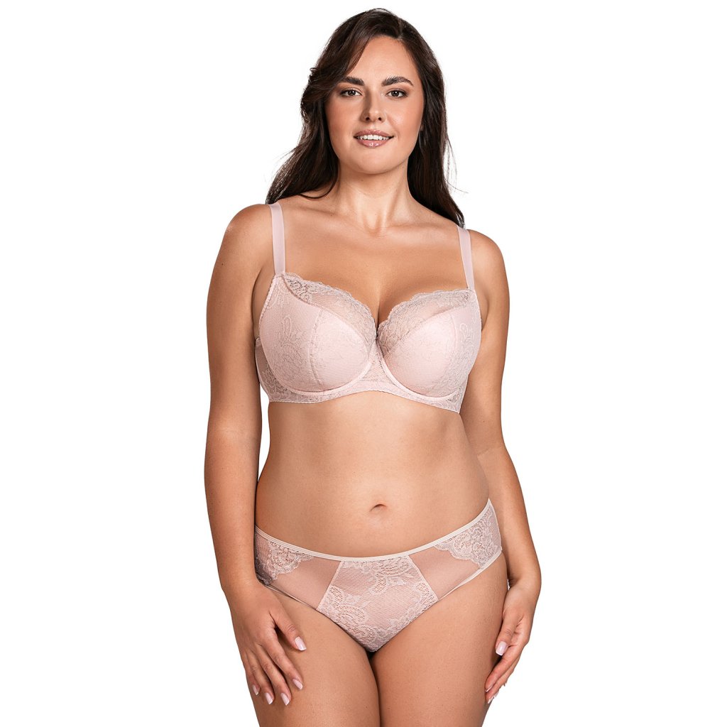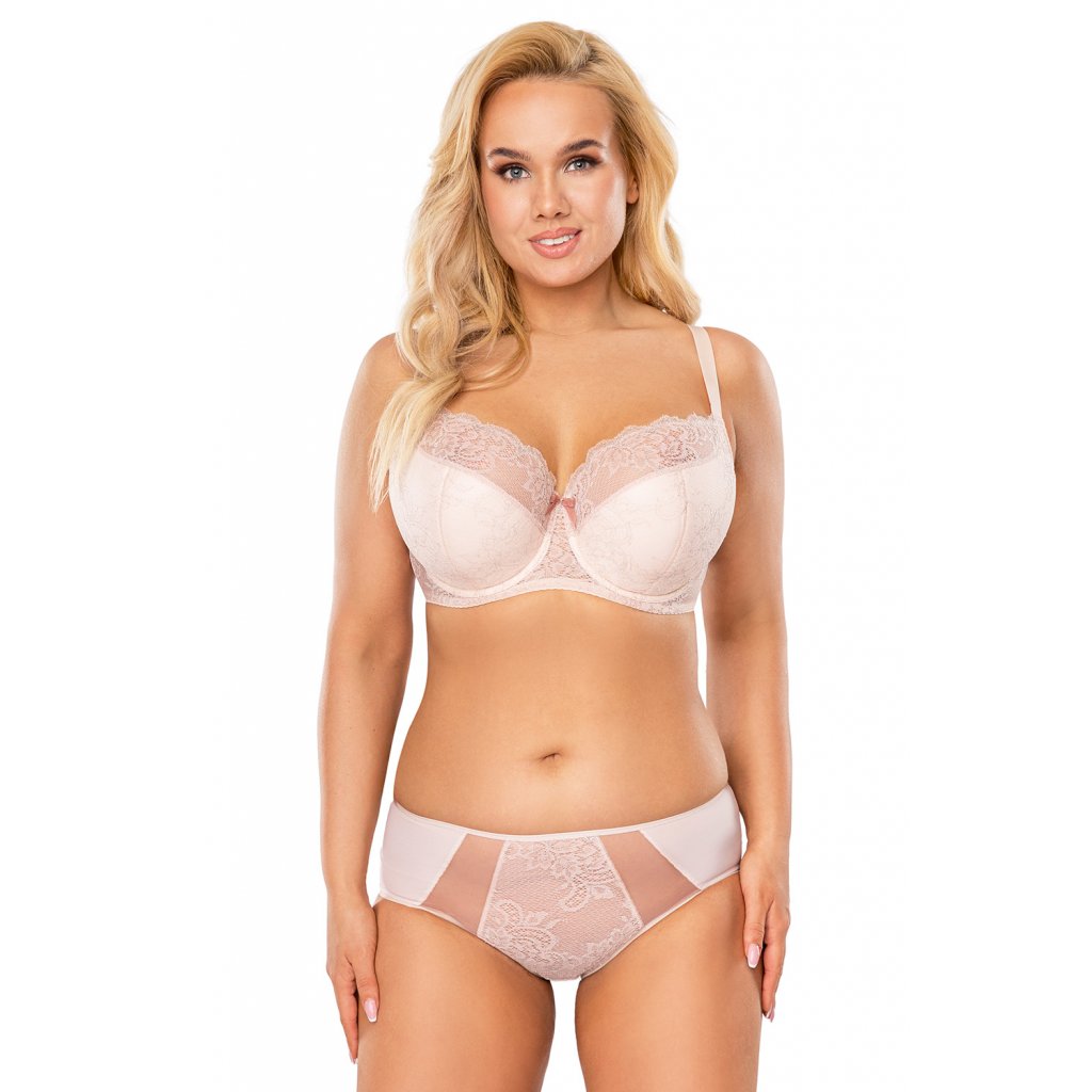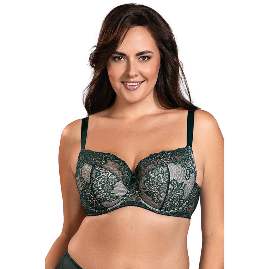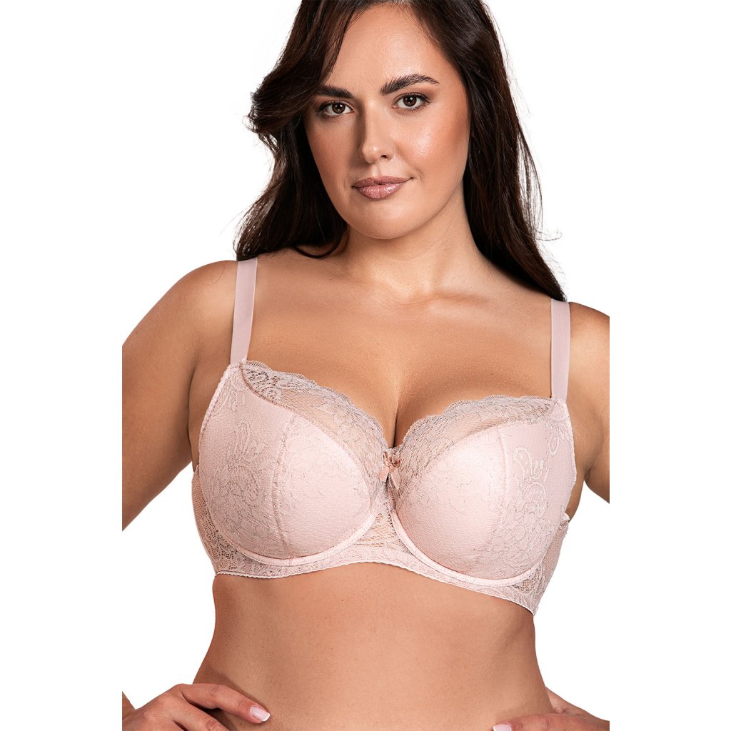 Jemná a mimořádně ženská polovyztužená podprsenka.- horní část košíčků z lesklé květinové krajky, podšité síťovinou.