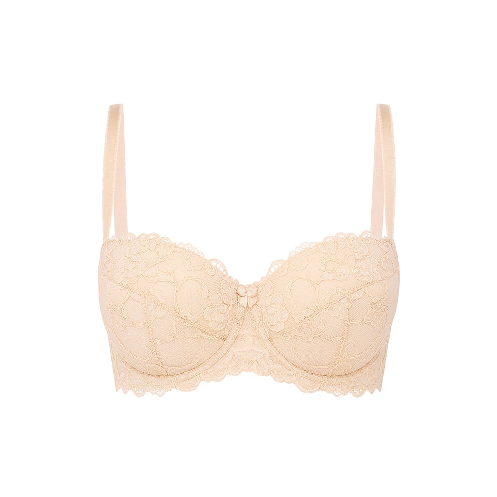Dámská vyztužená podprsenka v béžové barvě.- je celá vyrobená z jemné krajky