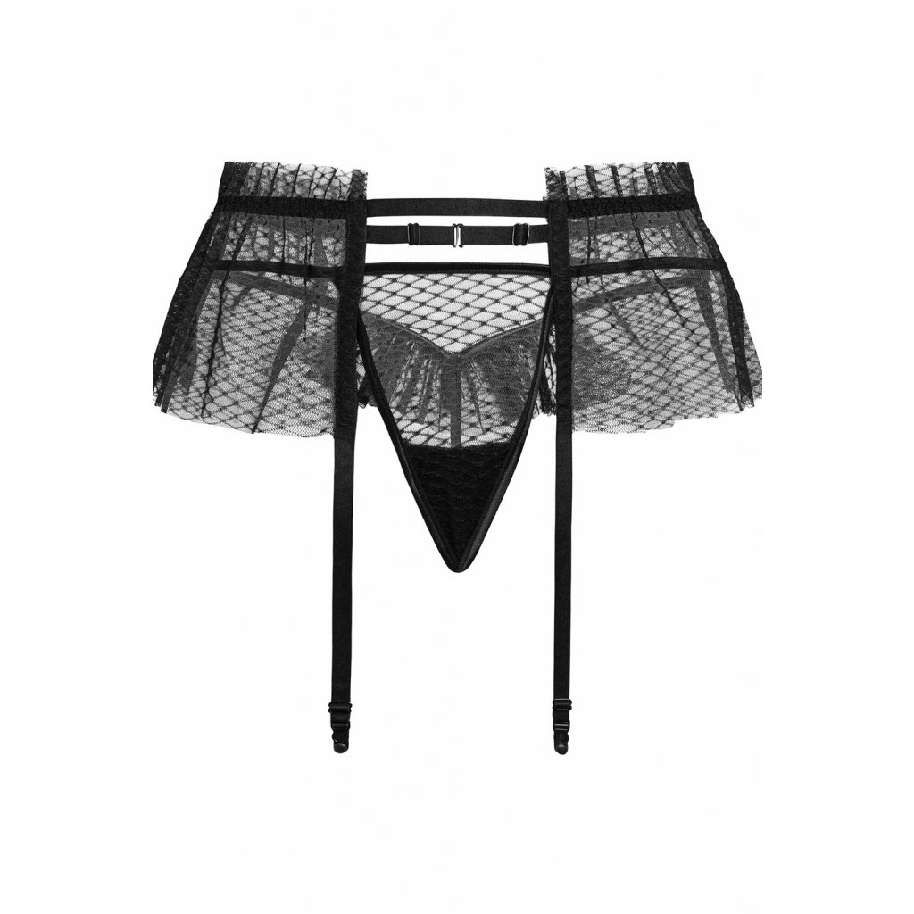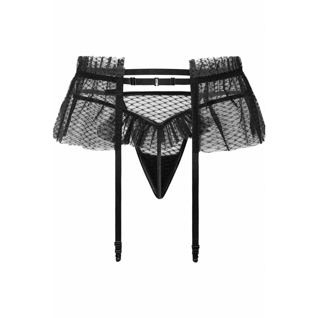 Sexy černý podvazkový pás v setu s tangami.- souprava vyrobena ze vzdušného, vzorovaného tylu
