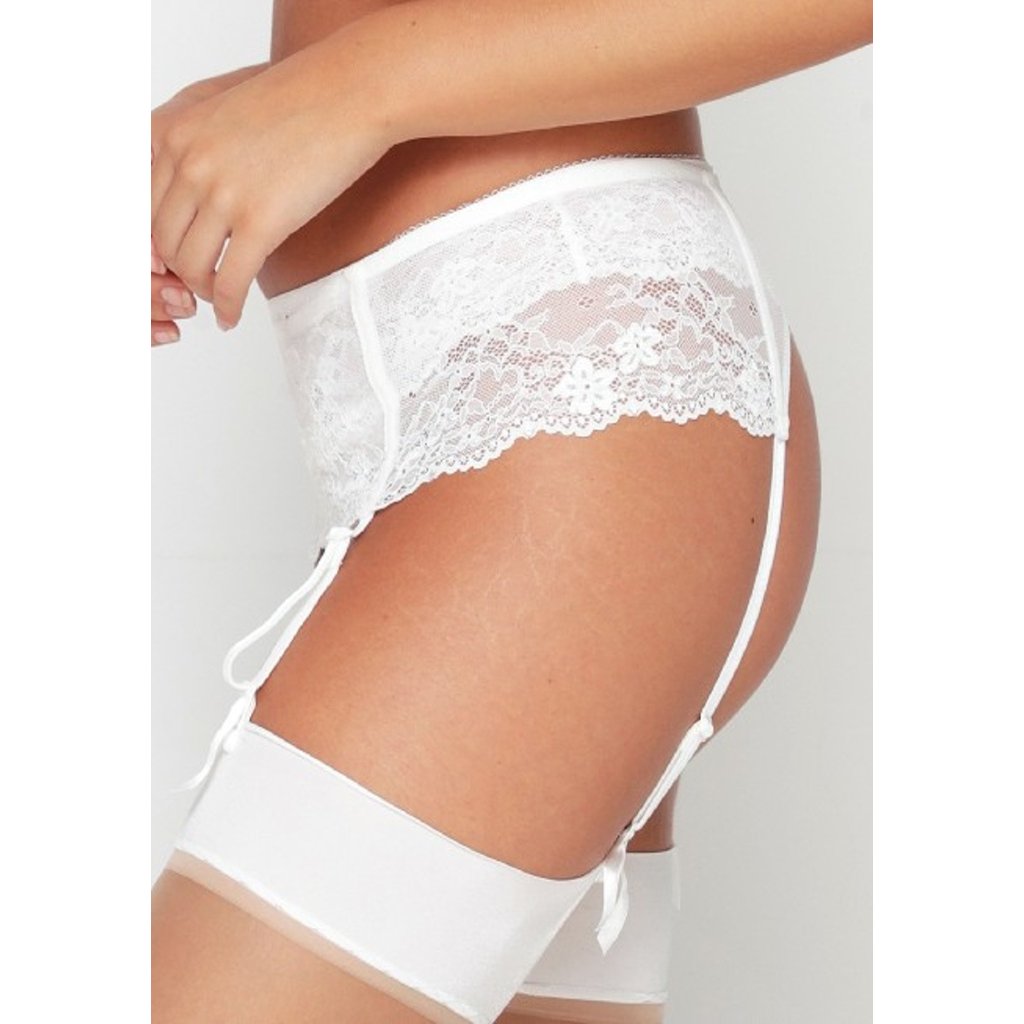 Krásný podvazkový pás z měkké květinové krajky doplní váš intimní outfit k dokonalosti. Má 4 nastavitelné elastické pásky končící zapínáním, které připnete ke své punčošce. Zapínání je kryté elegantní saténovou stužkou. Krajková část je vyztužena 4 měkkými dekorativními tunýlky, díky nimž pas drží svůj tvar a krajka se neroluje. Vzadu se podvazkový pas zapíná na 3 háčky a 3 pozice.