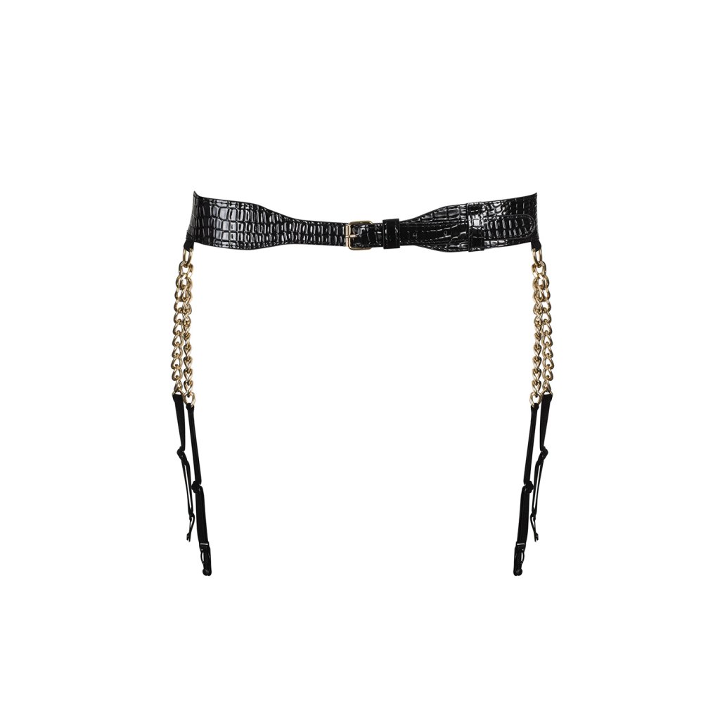 - podvazkový pás z kombinace černé látky a zlatých řetízků