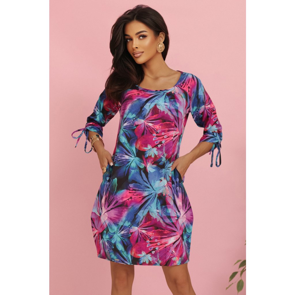 Pohodlné oversized šaty s vázáním na rukávech - barevné květiny 323-2 - výprodej