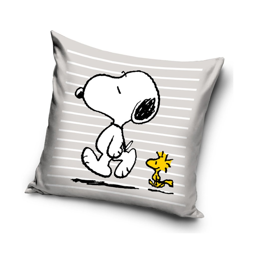 Na obou stranách polštářku je stejný, decentní a přitom okouzlující motiv Snoopyho a jeho kamaráda Woodstocka