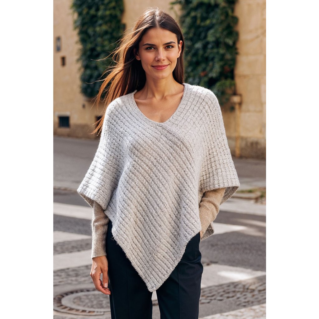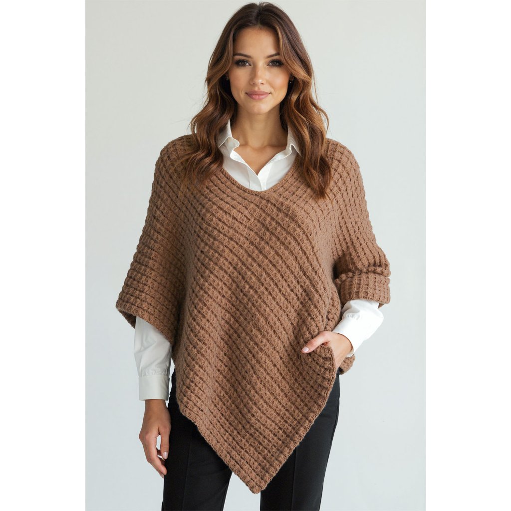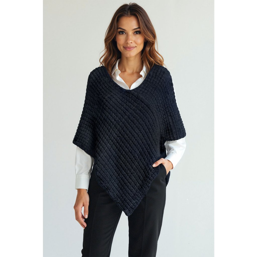 Pletené pončo s asymetrickým střihem.- stylové pončo vyrobené z měkkého, příjemného na dotek úpletu