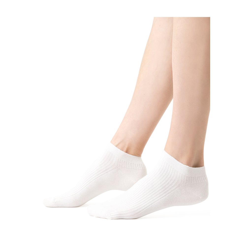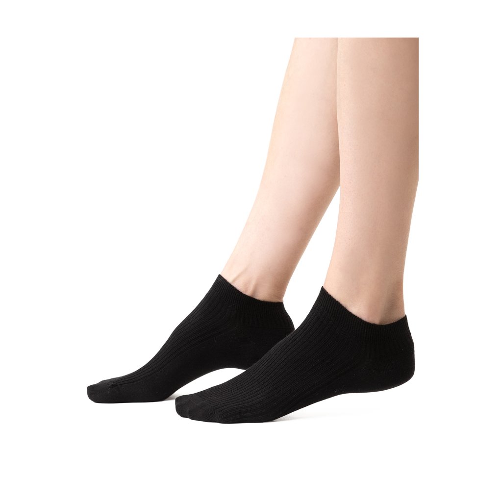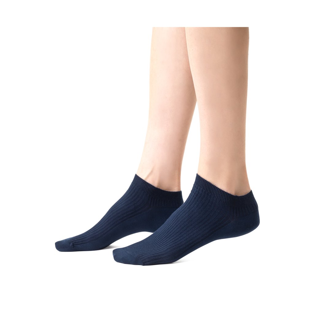 Pohodlné nohy z žebrovaného bavlněného materiálu. Kotníkový model perfektně sedí na noze. Bezešvé spojení a jemný lem. Složení: 70% bavlna, 28% polyamid, 2% elastan.