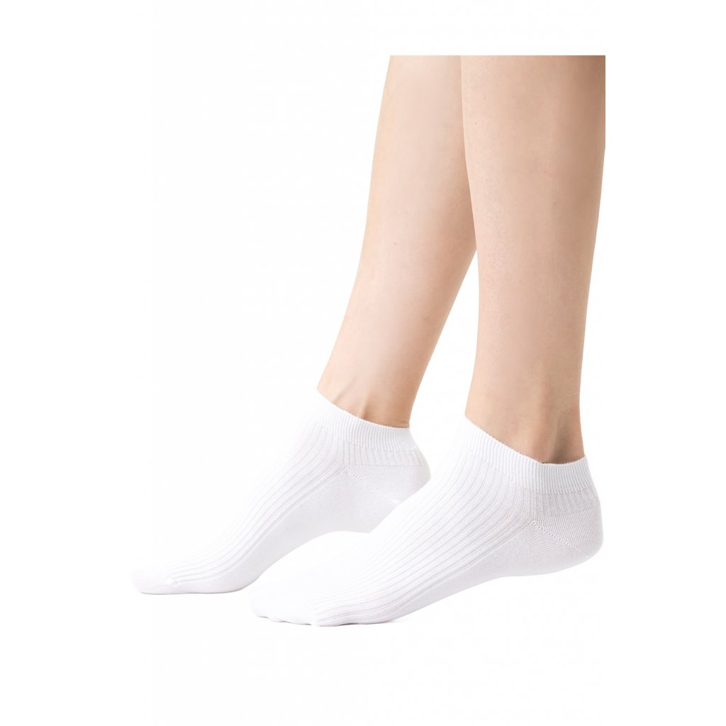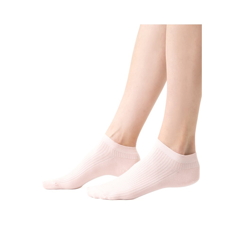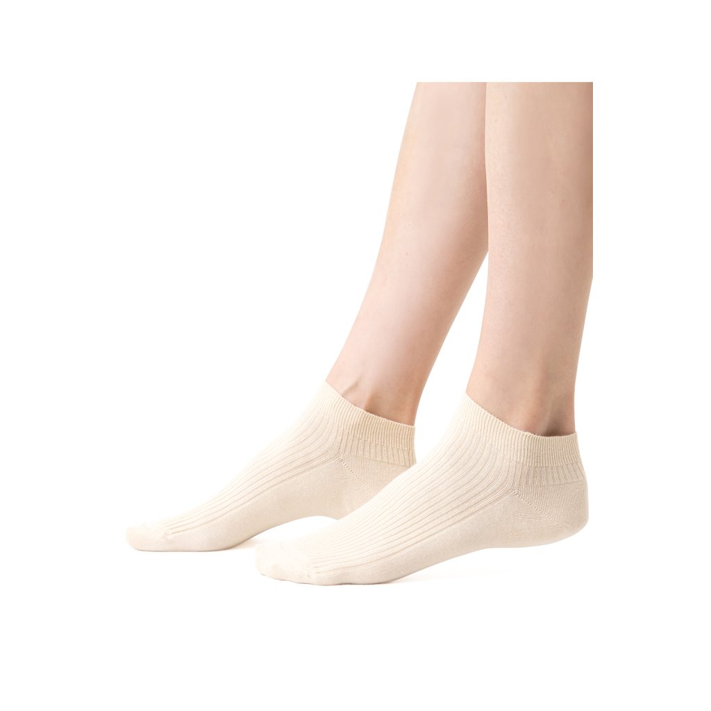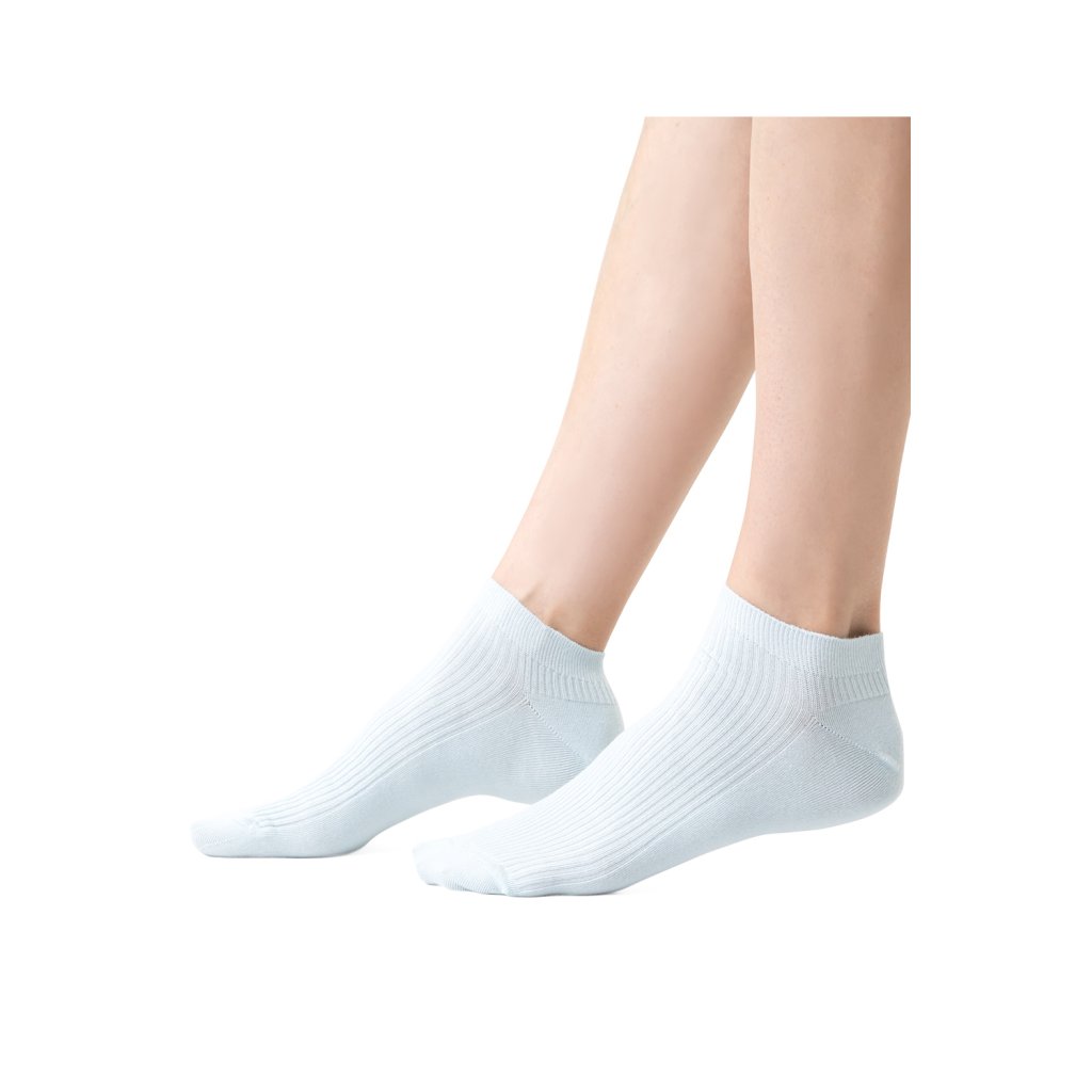Pohodlné nohy z žebrovaného bavlněného materiálu. Kotníkový model perfektně sedí na noze. Bezešvé spojení a jemný lem. Složení: 70% bavlna, 28% polyamid, 2% elastan.