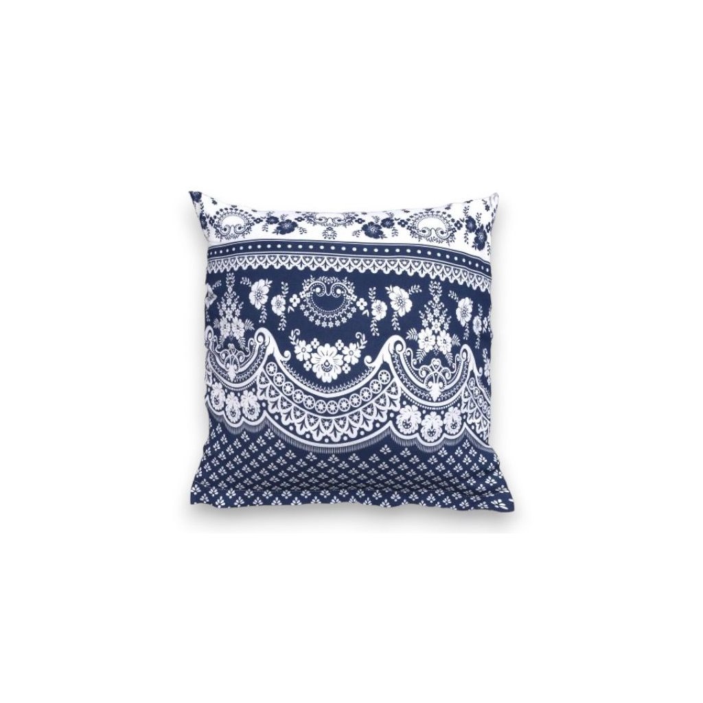 Povlak na polštář hladká bavlna CANZONE modré bordura