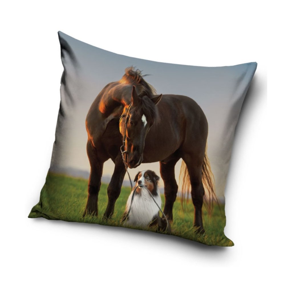 Dekorační povlak na polštářek Kůň a Border Kolie, je vyrobený ze 100% polyesteru