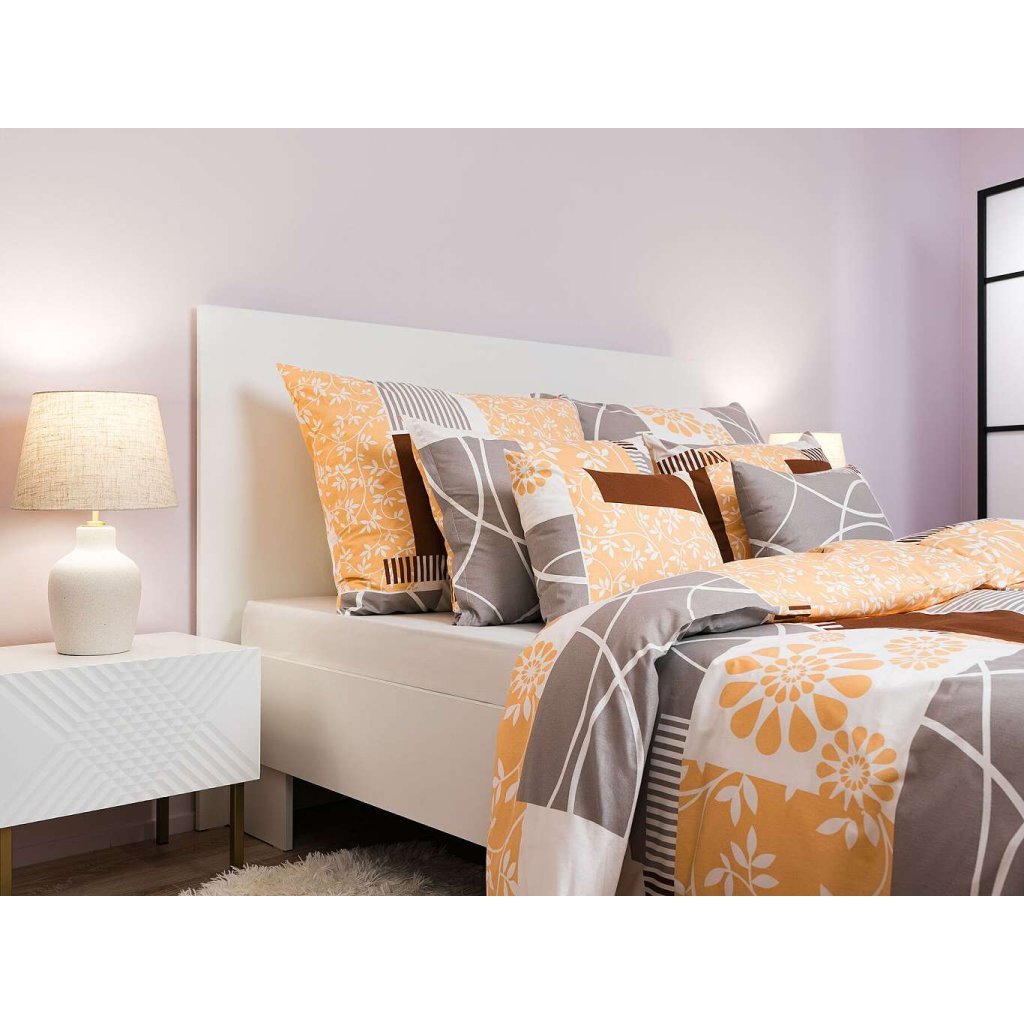 Stylové ložní prádlo Bluemoon nugát kombinuje květinové motivy s geometrickými prvky v odstínech nugátové, žluté, bílé a světle šedé. Tento moderní a zároveň elegantní design přináší do ložnice harmonii a teplý nádech. Povlečení doporučujeme kombinovat s prostěradly v barvě bílá, světle šedá, nugátová nebo okrová. Vyrobeno v České republice firmou DADKA VRACOV.