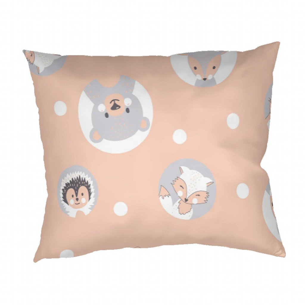 Design s motivem lesních zvířátek na meruňkovém pozadí působí klidně a hravě. Díky rozměrům 90×130 cm (přikrývka) a 45×60 cm (polštář) je ideální do dětské postýlky. Povlečení si dlouho zachovává své barvy i tvar.