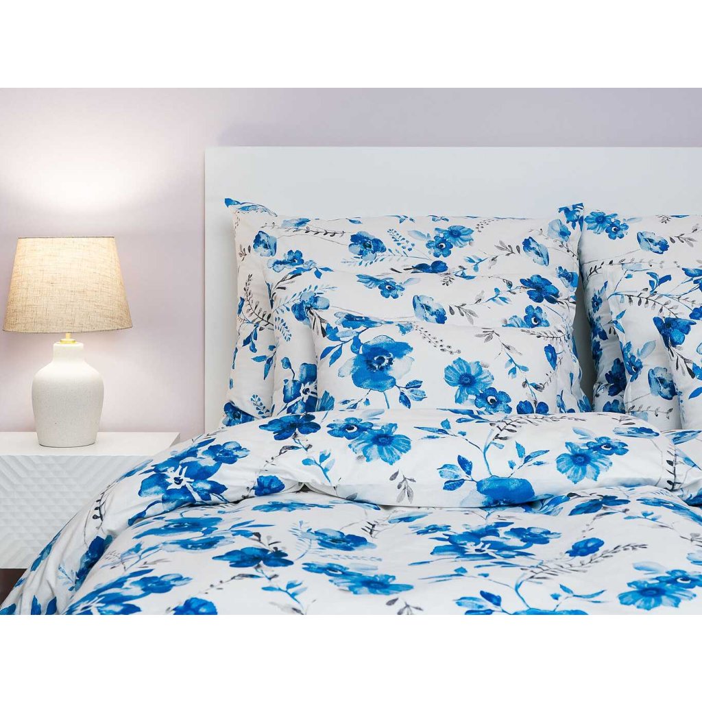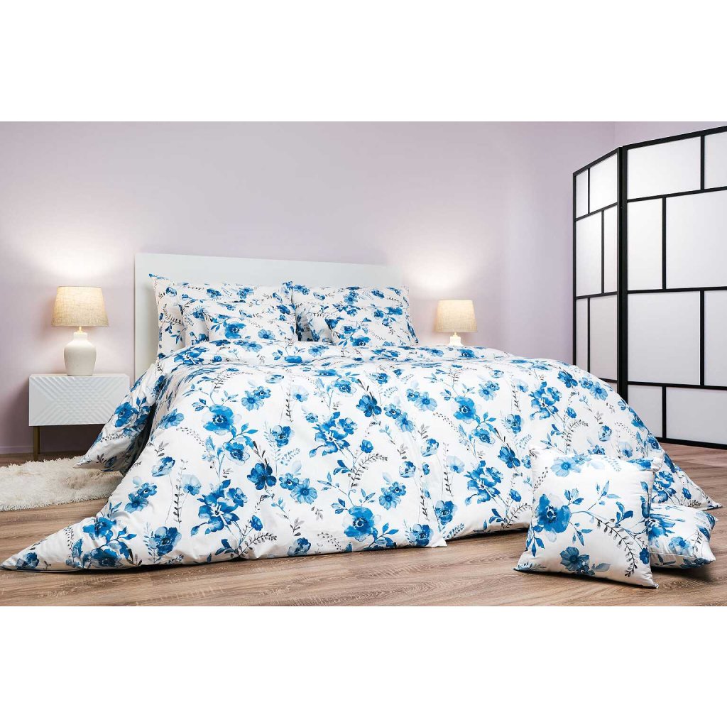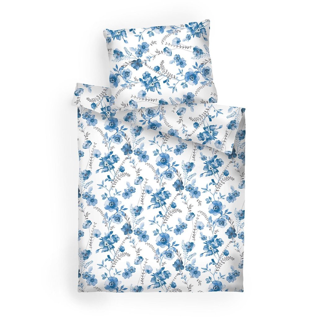 Povlečení bavlna Kvítí modré na bílém 140x200, 70x90 cm