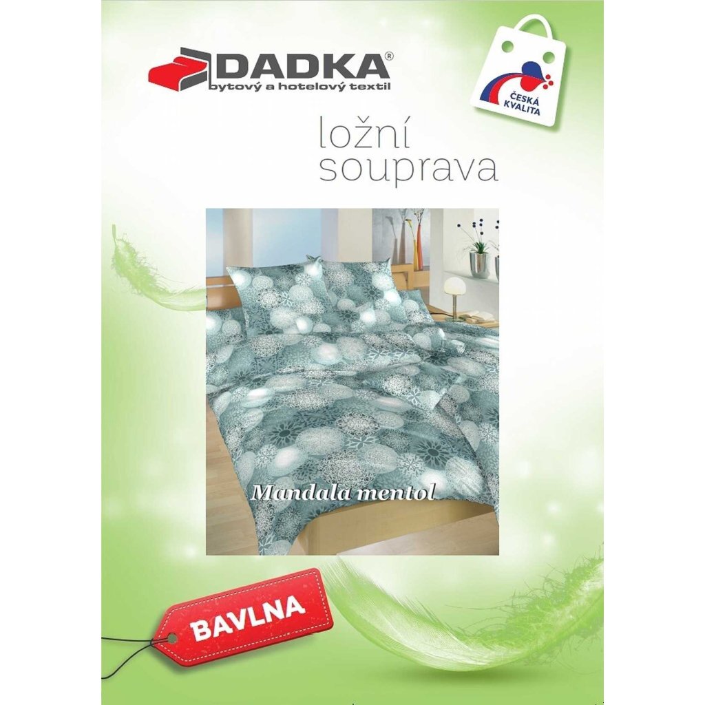 Moderní ložní prádlo Mandala mentol zaujme mentolovým základem s jemným vzorem mandal, které navozují pocit klidu a rovnováhy. Skvěle se hodí do moderních i boho interiérů. Vyrobeno v České republice firmou DADKA VRACOV. Doporučujeme kombinovat s prostěradlem v barvě mentolové, bílé nebo šedé.