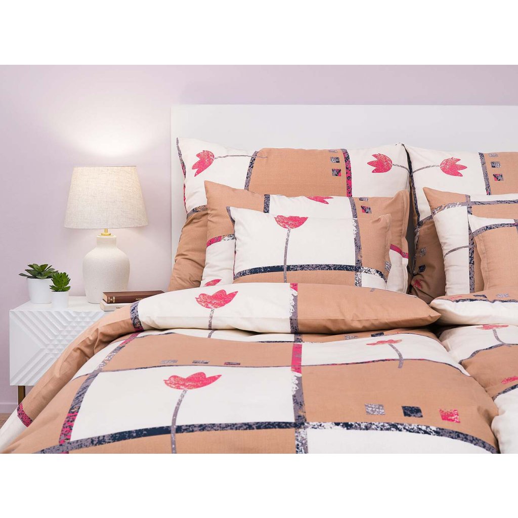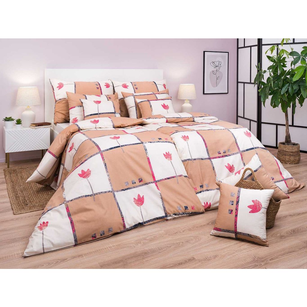 Povlečení bavlna Tulipán světle hnědý 140x200, 70x90 cm