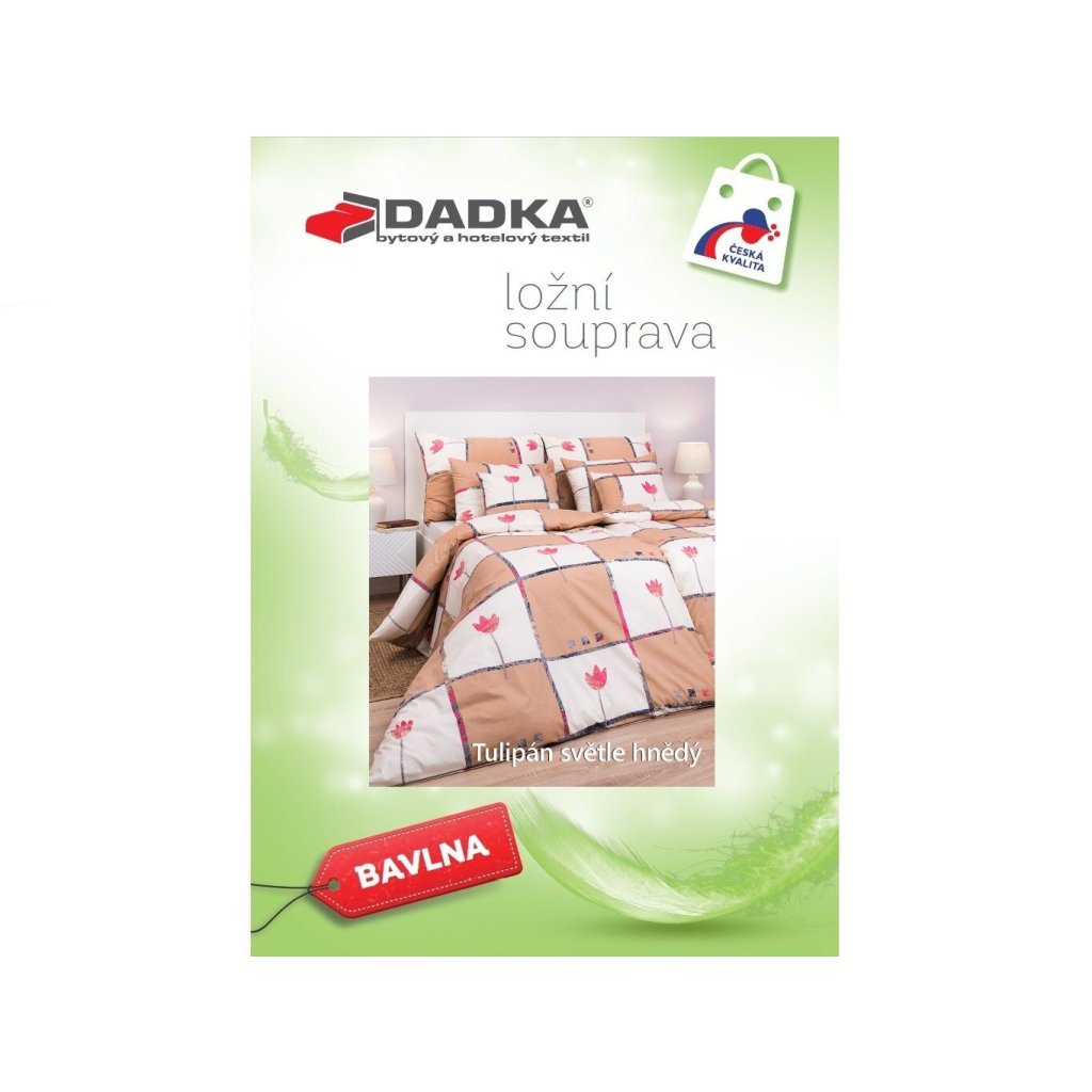 Stylové ložní prádlo Tulipán světle hnědý přináší do vaší ložnice klidnou a harmonickou atmosféru. Jemný motiv tulipánů v kombinaci světle hnědé a bílé barvy působí příjemně a vkusně. Doporučujeme kombinovat s prostěradly v barvě banán, opál, tmavě šedá nebo světle hnědá. Vyrobeno v České republice firmou DADKA VRACOV.