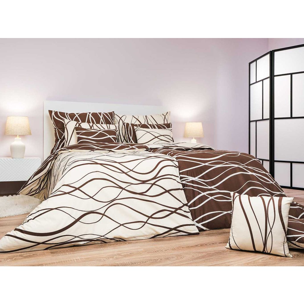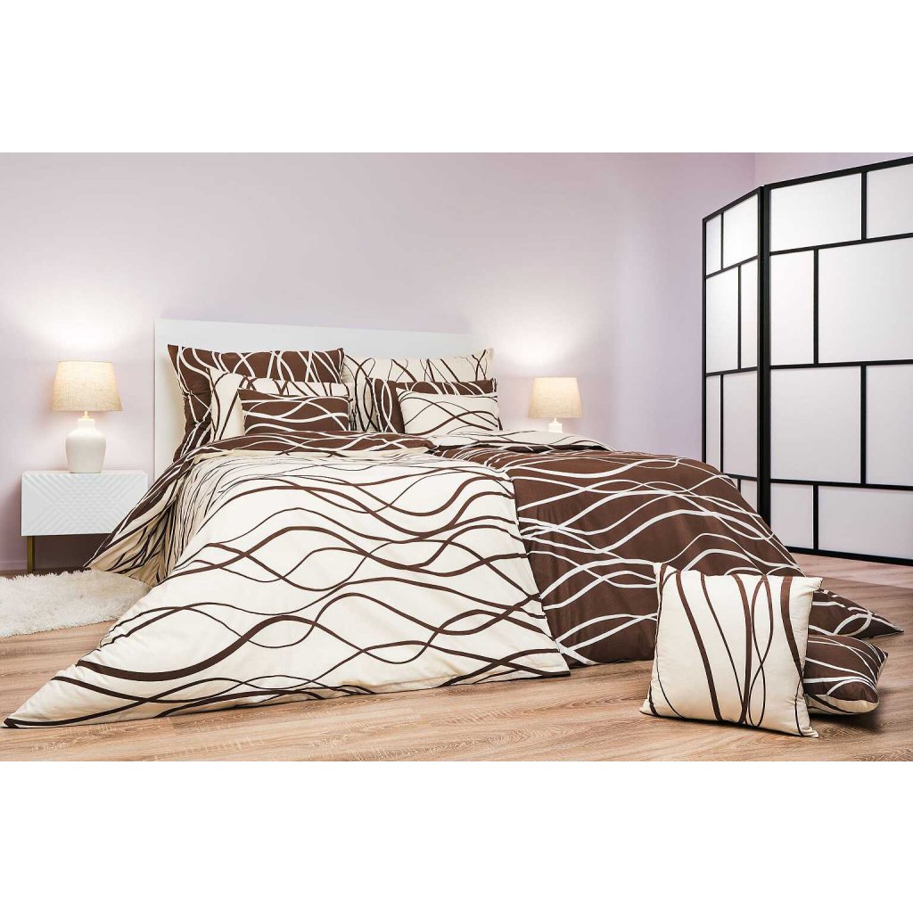 Povlečení bavlna Vlny banánové/hnědé DUO 140x200, 70x90 cm