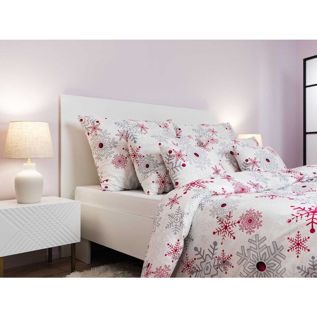 Obsah balení: 1x polštář o rozměru 70x90 cm a 1x povlak na přikrývku o rozměru 140x200 cm.Dezén: Vločky šedé.