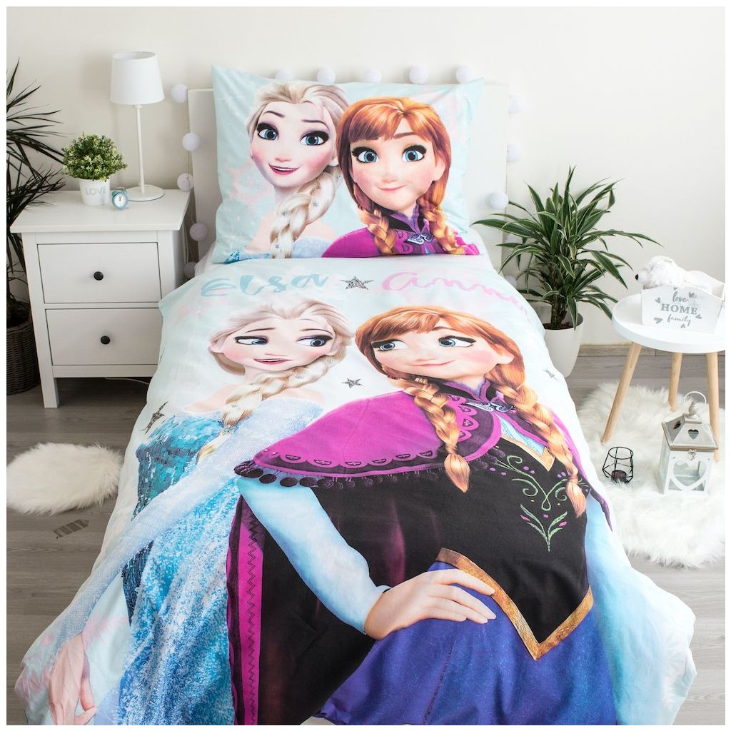 Vstupte do světa dobrodružství s povlečením Frozen Light Blue 03! Tento nádherný design přináší oblíbené postavičky Elsa a Anna na světle modrém pozadí, které rozzáří každý dětský pokoj. Na přikrývce jsou zobrazeny postavičky Elsa a Anna zády k sobě, jejich obličeje jsou také na polštáři.