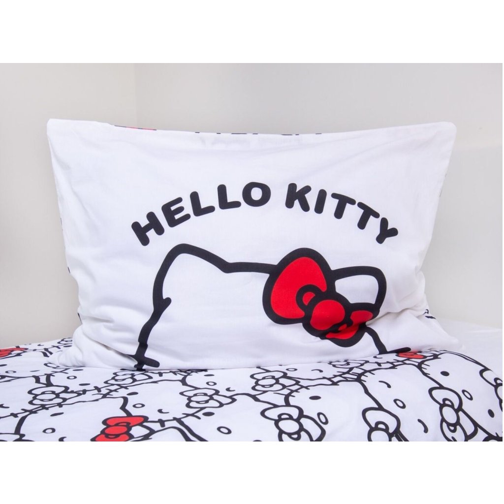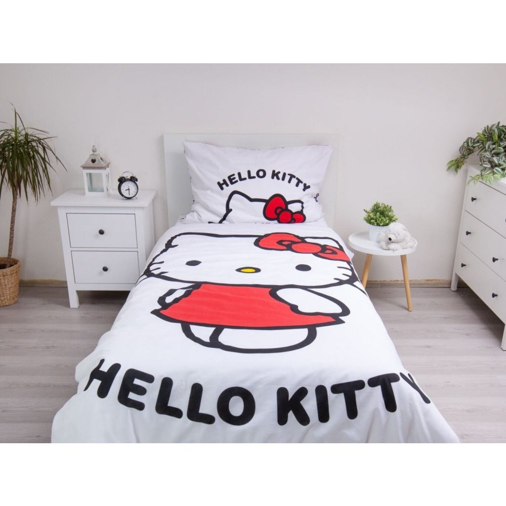 Roztomilé povlečení s oblíbenou postavičkou Hello Kitty v červených šatech a mašlí potěší každou malou slečnu. Kombinace barevného a černobílého motivu dodává povlečení hravý vzhled.