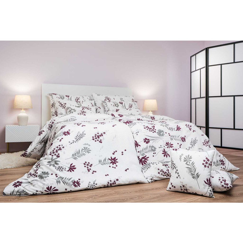 Povlečení krep Agáta vínová na bílém 140x200, 70x90 cm