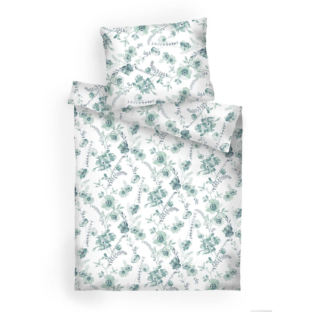 Povlečení krep Kvítí mentolové na bílém 140x200, 70x90 cm