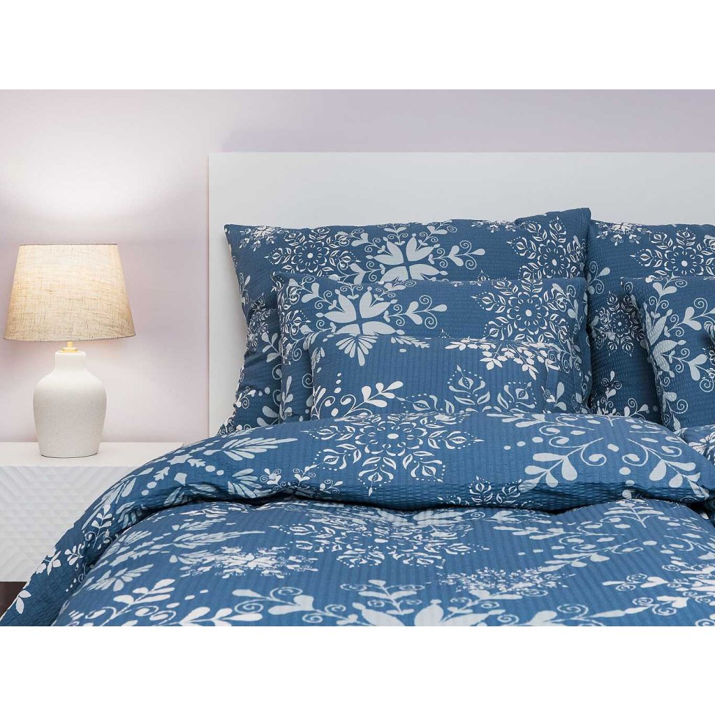 Elegantní krepové povlečení Snowflakes šedomodré s jemným zimním vzorem v šedomodrých tónech na modrém podkladu je ideální volbou pro každého, kdo ocení pohodlí bez nutnosti žehlení. Skvěle ladí s prostěradlem v barvě bílá nebo světle šedá. Vyrobeno v České republice firmou DADKA VRACOV.
