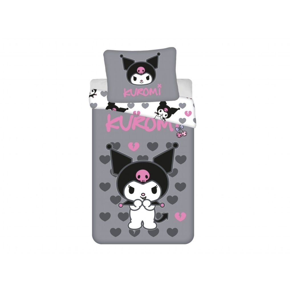Objevte svět hravosti a originality s povlečením Kuromi! Tento moderní a lehce rebelsky laděný motiv zdobí oblíbená postavička na elegantním šedém pozadí se srdíčky a růžovými detaily. Design rozzáří každý pokoj a dodá mu osobitý styl.