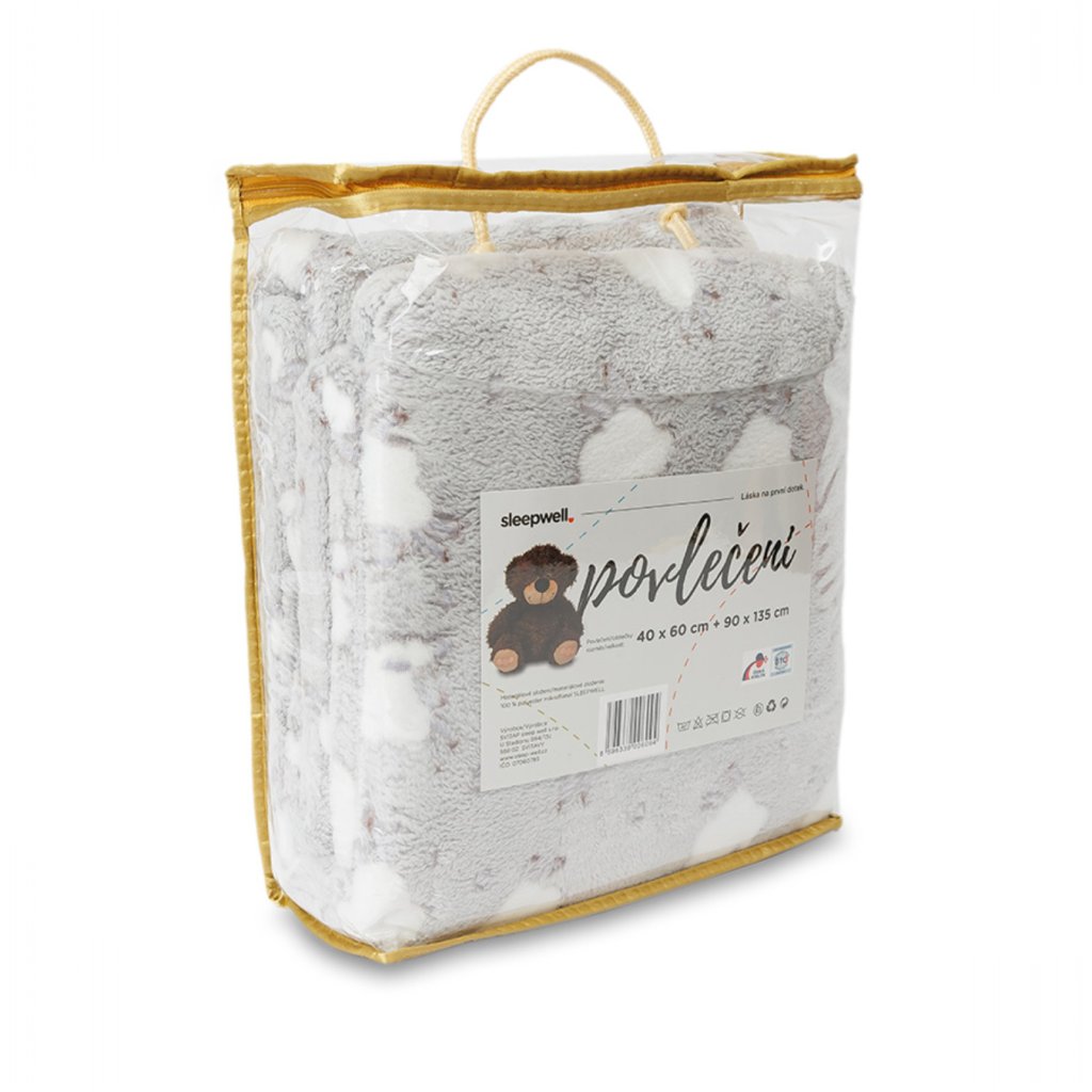 Povlečení mikroflanel do postýlky Ovečky světle šedé 90x135, 40x60 cm