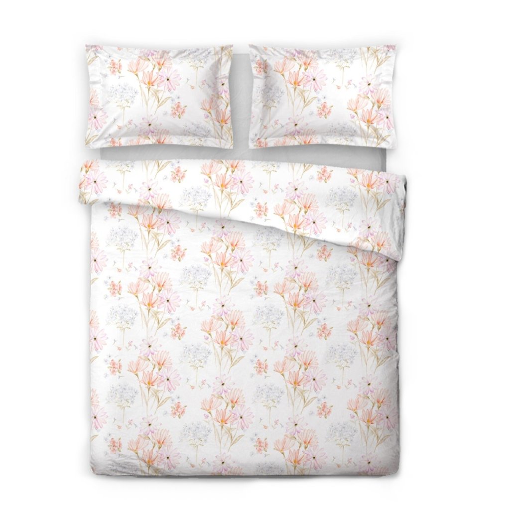Povlečení Mikroflanel Svěží ráno značky SLEEP WELL® přináší do ložnice svěžest, jemnost a pohodlí. Pastelové květy v odstínech růžové, oranžové a bílé na světlém podkladu vytvářejí lehký a elegantní vzhled.