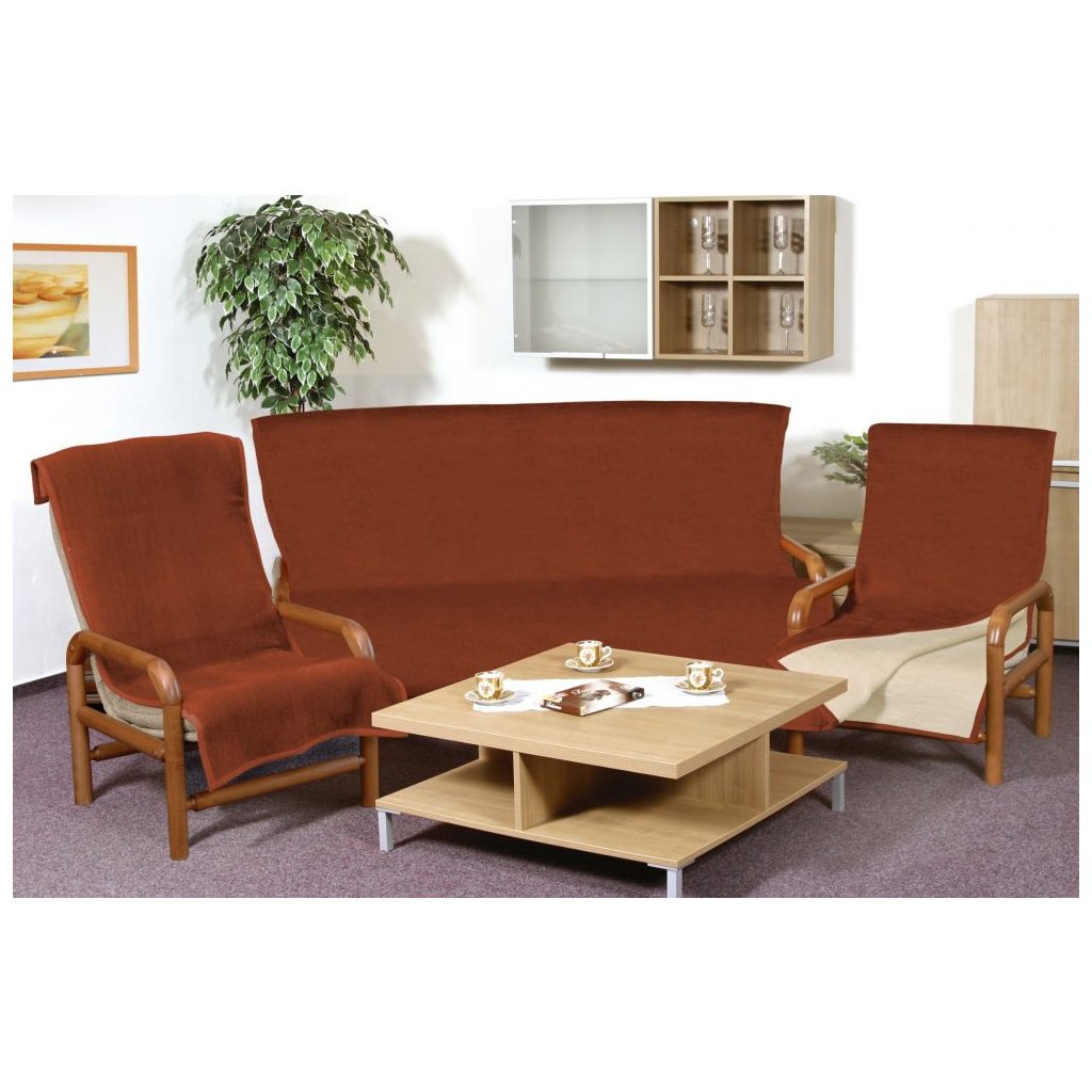 - Přehoz jednobarevný je vyroben jako souprava 3+1+1 (sedačka + křeslo + křeslo).