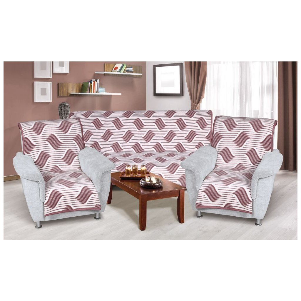 - Přehoz na sedací soupravu je vyroben jako souprava 3+1+1 (sedačka + křeslo + křeslo).