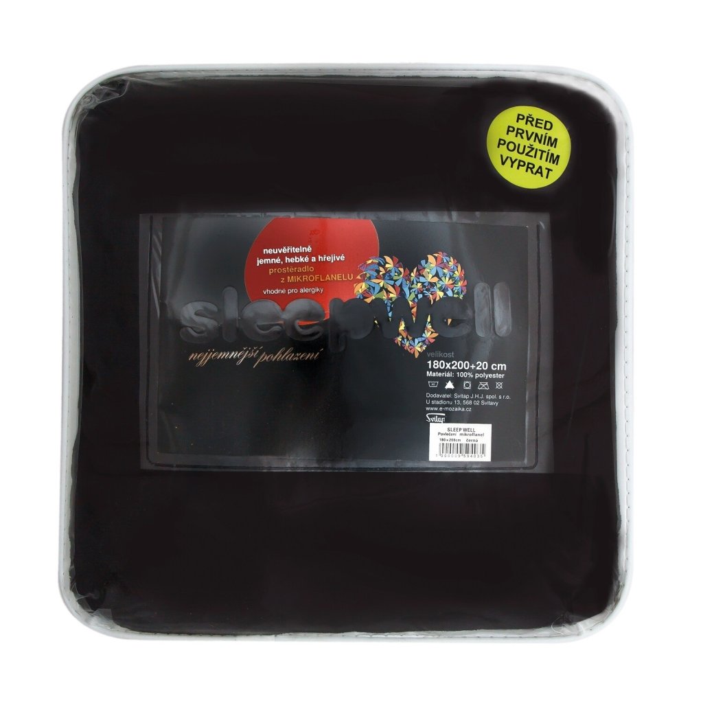 Prostěradlo mikroflanel černá 90x200x20 cm